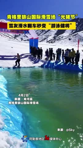 青格里狼山国际滑雪场“光猪节” 雪友滑水翻车秒变“游泳健将”