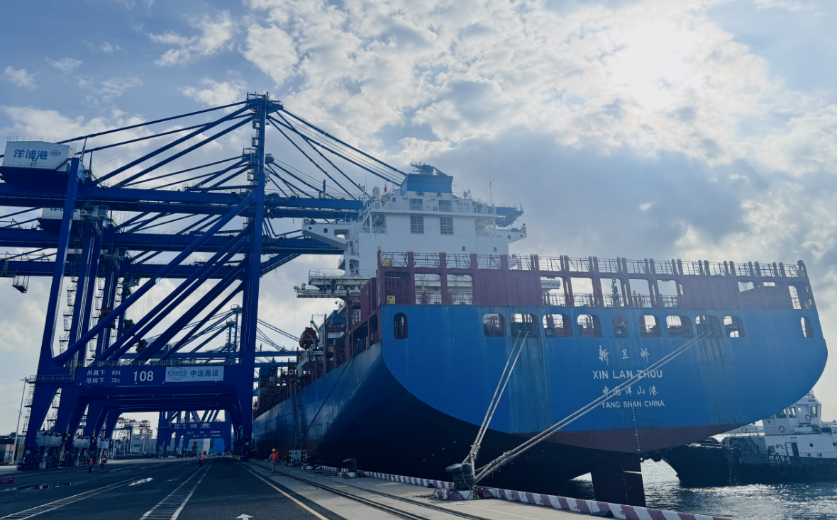 “‘新兰州’号即将前往中东,这是我们今年新开通的一条外贸航线。”洋浦交通运输和港航局工作人员孟泽指着停靠在码头边的万吨巨轮说道。