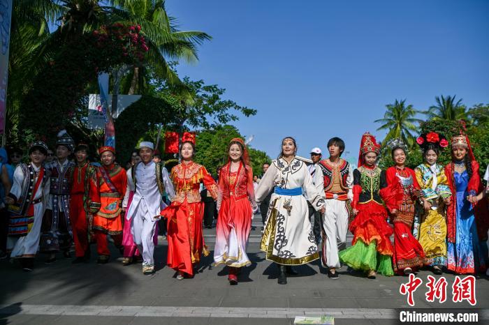 11月26日,第十二届全国少数民族传统体育运动会民族大联欢活动在海南三亚天涯海角园区举行。中新网记者 骆云飞 摄