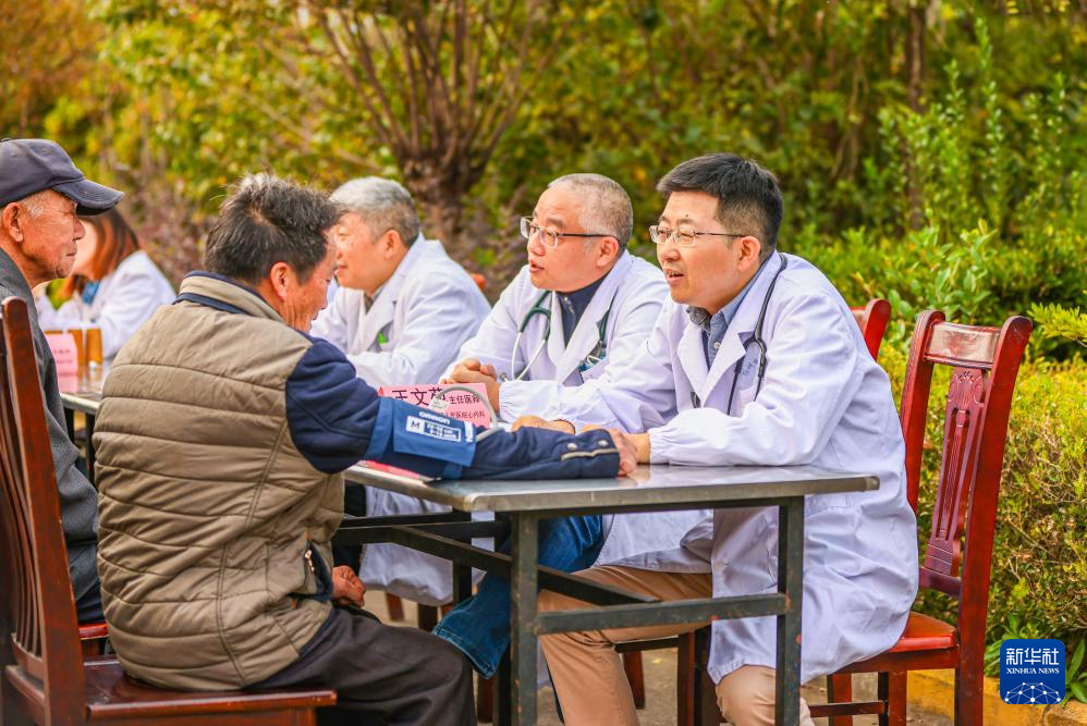 10月28日,河南省焦作市温县的医务工作者为老人义诊。新华社发(徐宏星摄)
