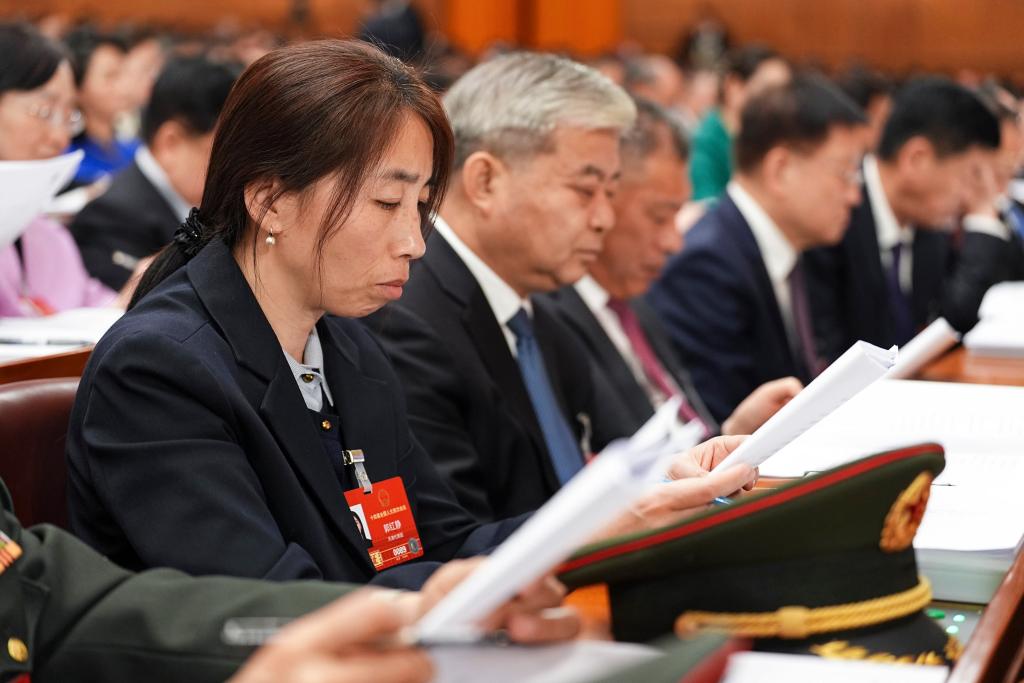 3月5日,全国人大代表金瑞瑞出席十四届全国人大四次会议开幕会。新华社记者 邢广利 摄