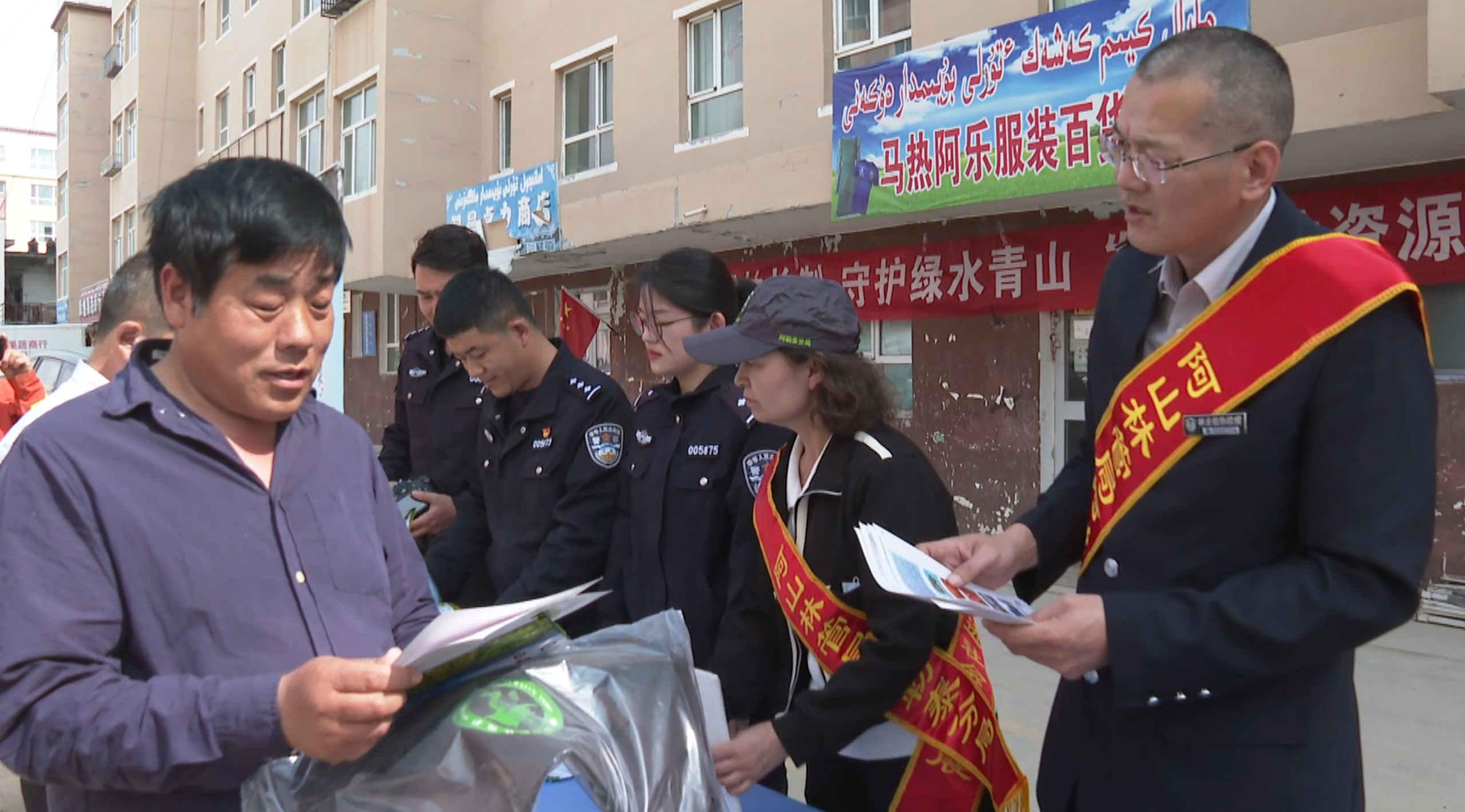 当日上午,阿尔泰山国有林管理局阿勒泰分局联合阿尔泰山食药环分局阿勒泰派出所、阿勒泰市红墩镇人民政府在红墩镇街头向来往居民进行防灾减灾宣传。