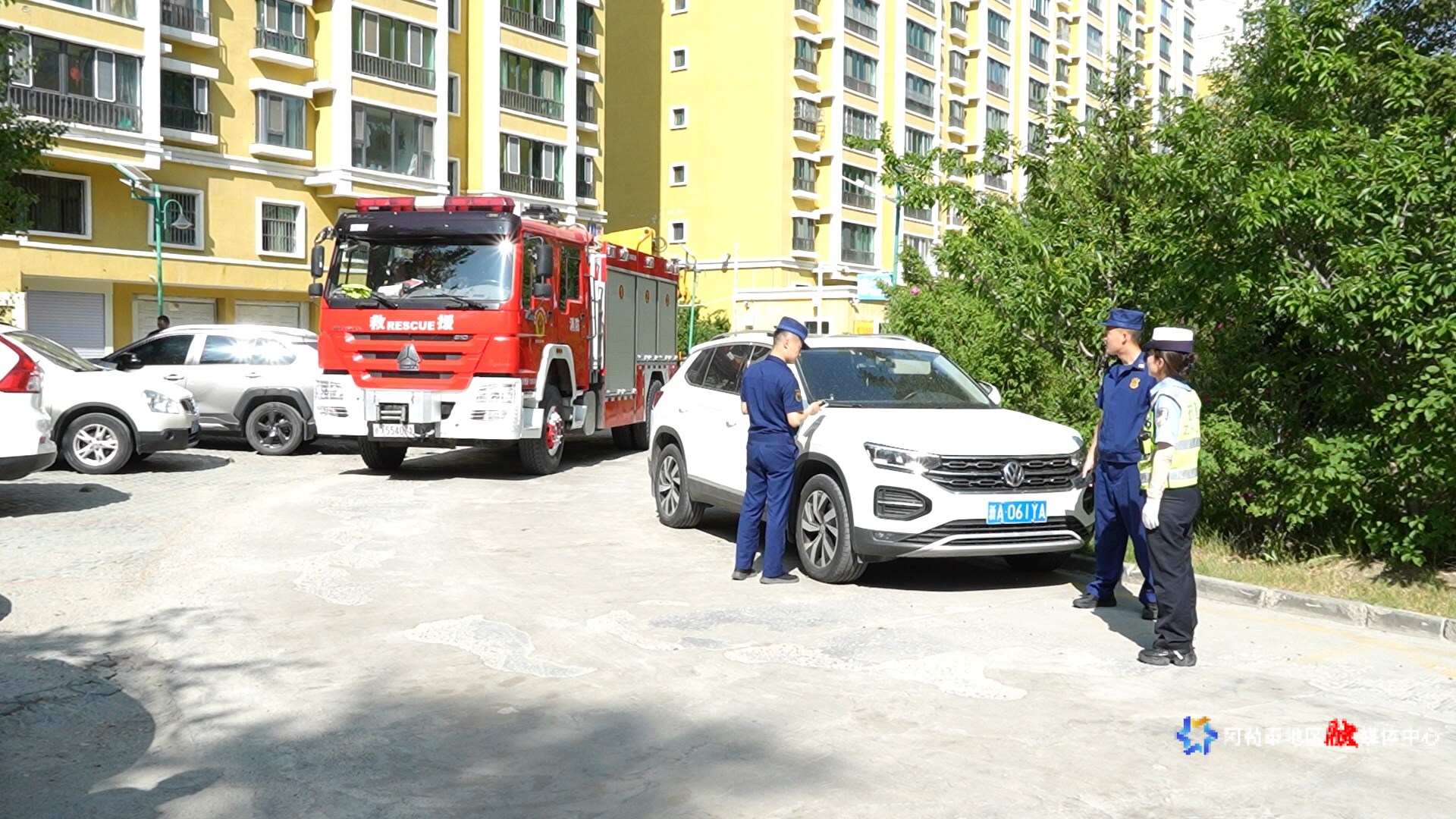 当天,在阿勒泰市江南花苑小区,检查组采取“现场检查+消防车实测”的方式,重点整治占用消防通道行为。对于违停车辆,检查人员当即联系车主移车并进行警告教育;同时,利用消防车实地检测通道宽度、转弯半径等指标,详细记录问题并督促相关责任方及时整改,确保消防通道畅通无阻。