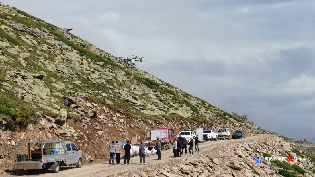 由于该信号塔安装位置地势较高,人工运输设备难度极大。为确保工程顺利推进,施工方专门聘请专业无人机调运团队,高效完成了设备传输、安装以及电力供应、信号开通等一系列工作。