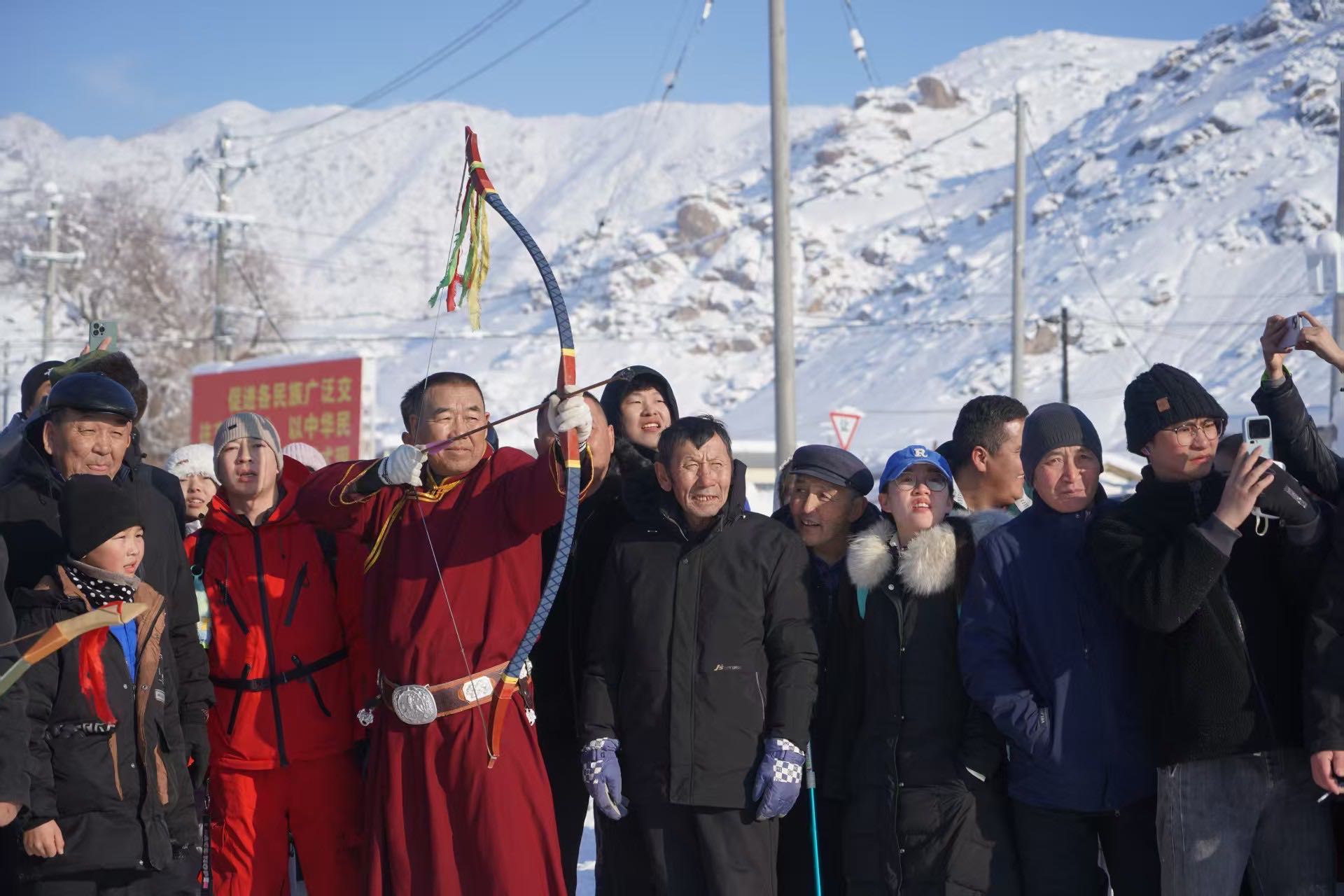 文艺演出率先开场,民族舞蹈、冬不拉弹唱、深情独唱等群众自编自演的节目轮番上演,展现了浓郁的民俗文化底蕴和民族团结的生动景象,台下掌声与喝彩声不断。随后,射箭、刁羊、姑娘追、押加、摔跤等特色民俗竞技项目接连开赛。选手们奋力角逐,观众热情助威,冬日乡村洋溢着热闹祥和的氛围。