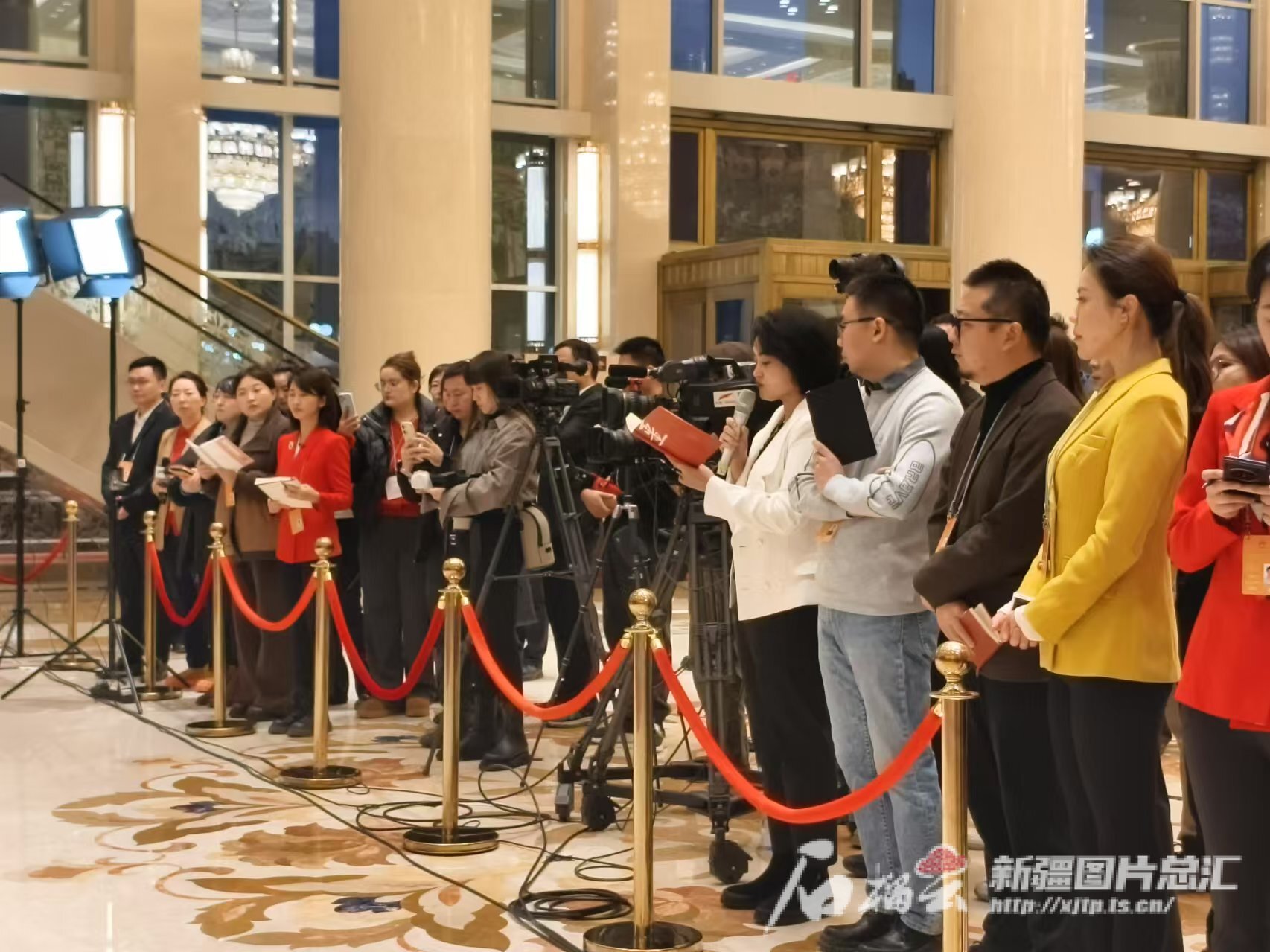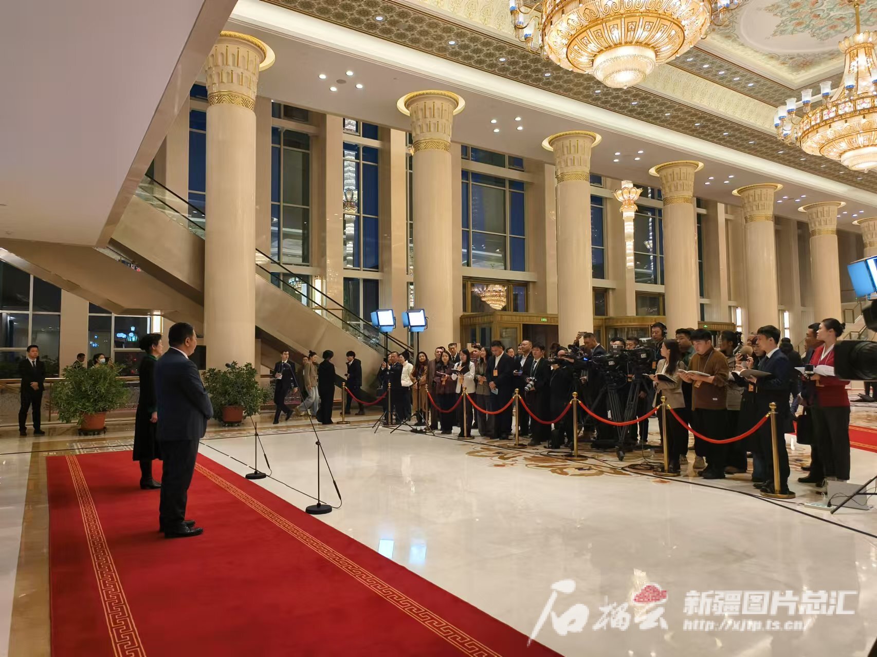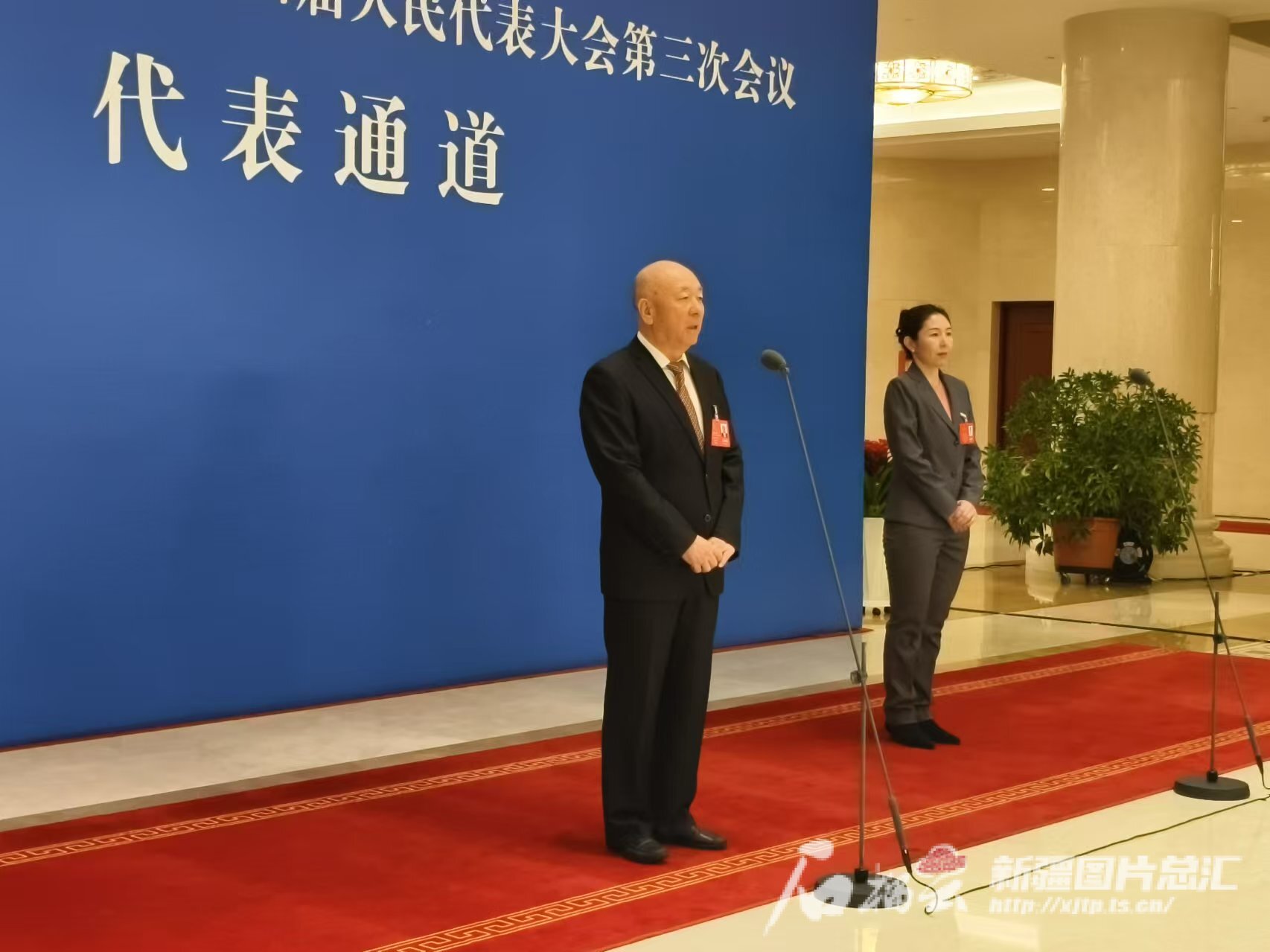 1月19日8时20分,新疆人民会堂大厅内灯光熠熠,大厅右侧一条不长的红毯通道前记者云集。9时10分,6名自治区人大代表步履矫健,神采奕奕,来到通道旁,在主持人简短介绍后,两位代表昂首上前站在聚光灯下,靠近话筒接受记者提问。