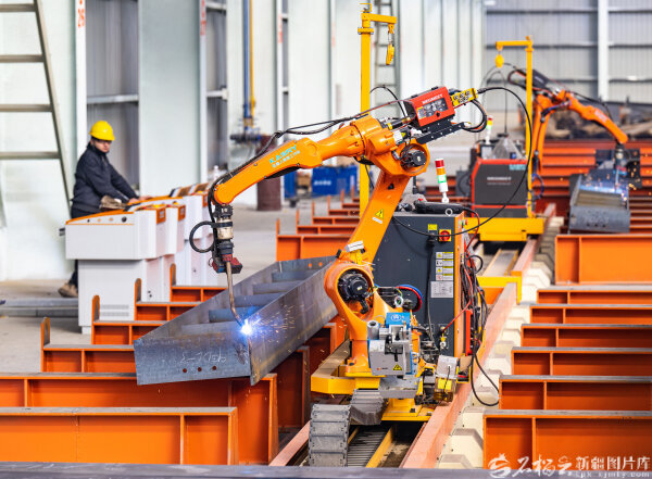 该公司有8条智能化生产线,专注于箱型柱、大跨度空间钢结构、绿色建材等产品的研发制造,年产能超10万吨。何龙摄