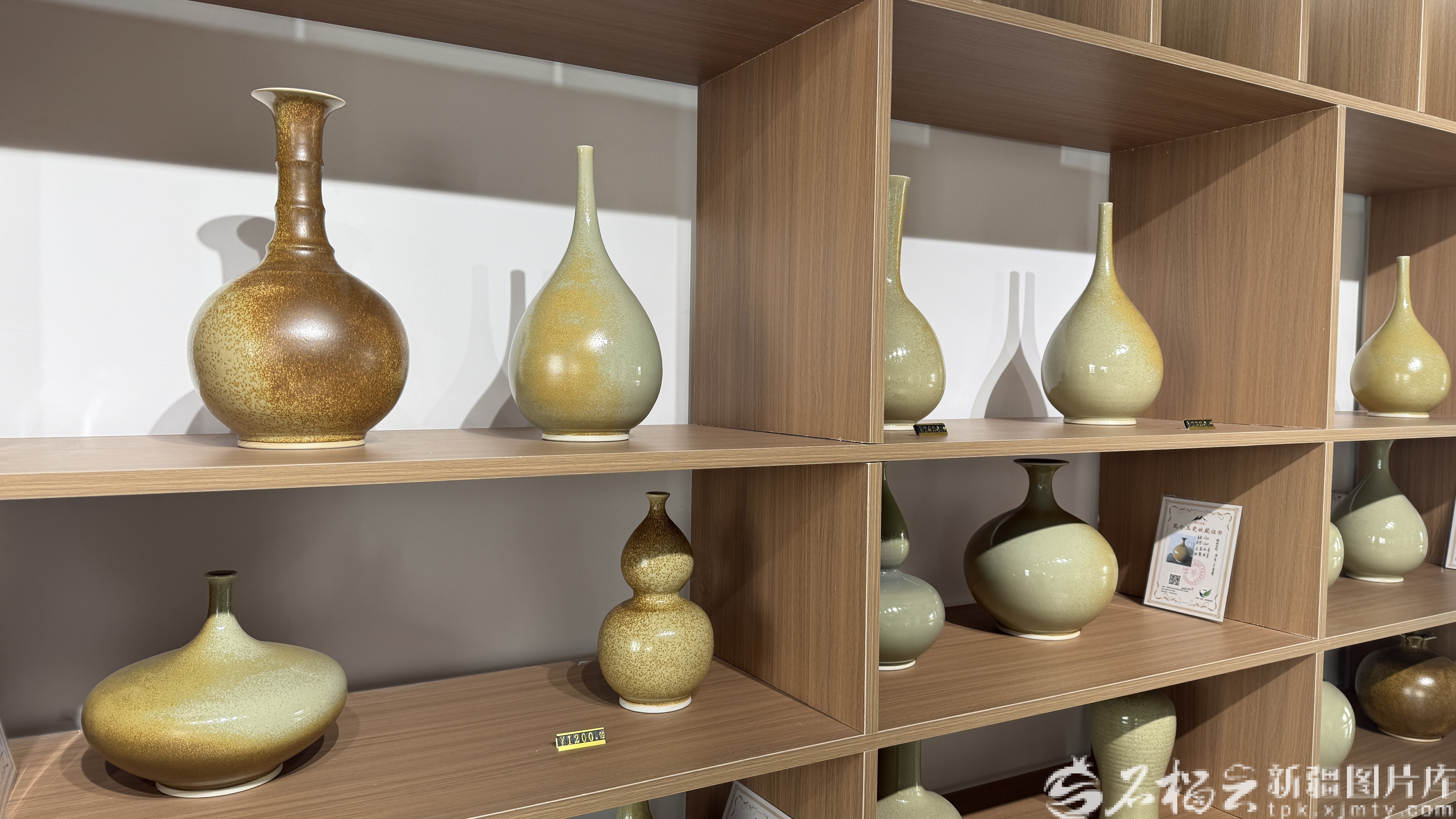 新疆昆仑玉瓷科技文化有限公司展厅,摆放着的各类洒金瓶。天山网-新疆日报记者 拍热扎提·阿不都摄