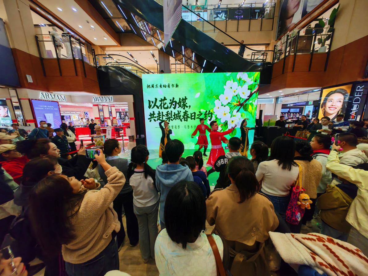 库尔勒梨花季推介会在乌鲁木齐北京路商圈的汇嘉时代商场举办。 黄万里摄